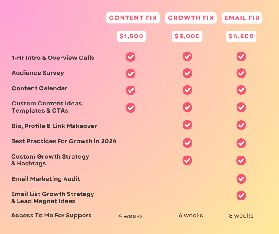 I can’t guarantee X amount of followers in X amount of time, but I can put you on a faster track to hitting growth goals. I’ve done it myself and I live and breathe all things Instagram.